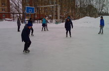 Каток, который залили на территории школы не остается без любителей покататься на коньках.