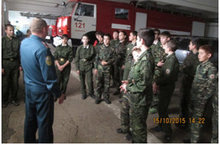 15 октября 2015 года кадеты 7Б класса под руководством педагога дополнительного образования Куренина Е.В. побывали на экскурсии в Пожарной части г.Мамадыш. Провел экскурсию начальник ПЧ – 121 ФМС России Маслов Анатолий Владимирович. Он рассказал о работе пожарных, привел примеры из практики, показал документальные фильмы с выездов на различные чрезвычайные ситуации: аварии, пожары. Ребята познакомились с работой дежурной части, с пожарной техникой, примерили на себе экипировку пожарных. Экскурсия ребятам очень понравилась.