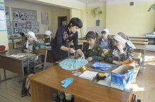 Сегодня Кекишева Н.Ю., учитель технологии провела открытый урок в 5б классе по теме "Обработка пояса".