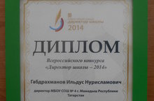 Мы поздравляем нашего директора Габдрахманова Ильдуса Нурисламовича с победой. Он награжден Дипломом Всероссийского конкурса "Директор школы - 2014". Мы желаем Ильдусу Нурисламовичу успехов в работе!