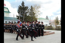 9 мая кадеты школы открыли праздничный парад. Колонна школы была красочно оформлена. Кадеты 7б класса исполнили композицию с георгиевскими лентами. Кадеты 10б класса участвовали в вахте памяти - организовали Почетный караул у Вечного огня.