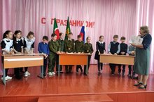 Урок мужества в 4В классе провел подполковник милиции, ветеран боевых действий Донсков Олег Анатольевич. Он в доступной форме рассказал детям о празднике 23 февраля, отвечал на вопросы.