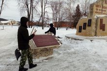 Сегодня ученики старших классов расчистили от снега памятник погибшим при исполнении воинского долга.