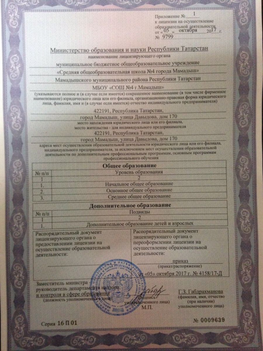 Лицензия на осуществление образовательной деятельности (с приложением)