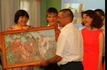 На память о себе выпускники преподнесли школе картину, вышитую своими руками.