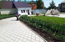 Коллектив школы-интерната под руководством заведующей пришкольным участком Гульсиной Ахметовой "колдует" над созданием красоты вокруг учреждения!