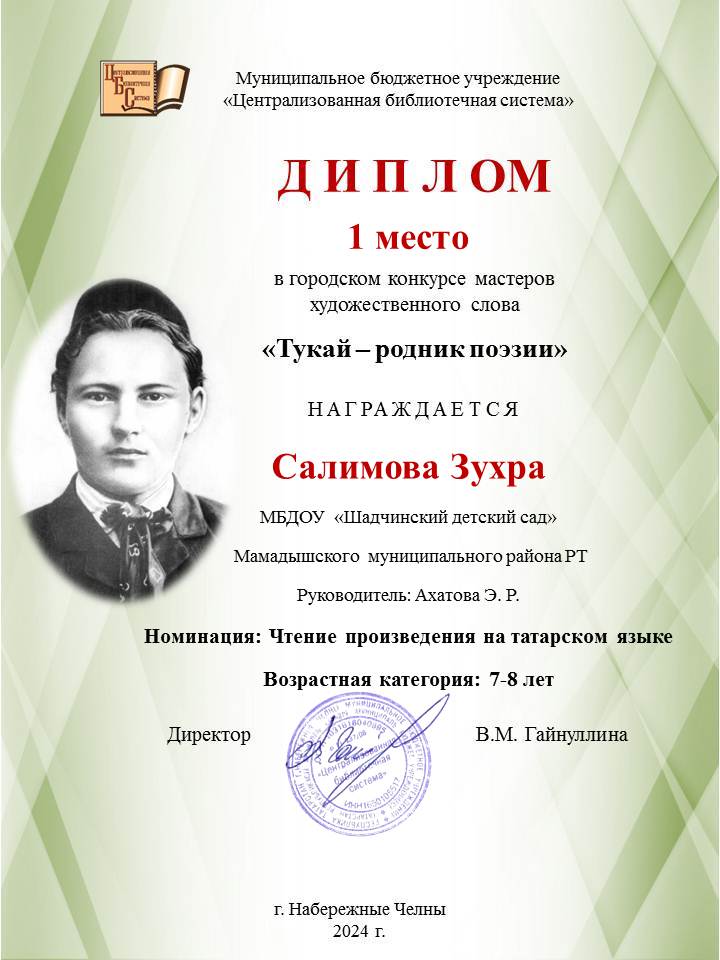 Муниципальное бюджетное дошкольное образовательное учреждение «Шадчинский детский сад» Мамадышского муниципального района РТ/ТР Мамадыш муниципаль районы муниципаль бюджет мәктәпкәчә белем бирү учреждениясе "Шәдче балалар бакчасы"
