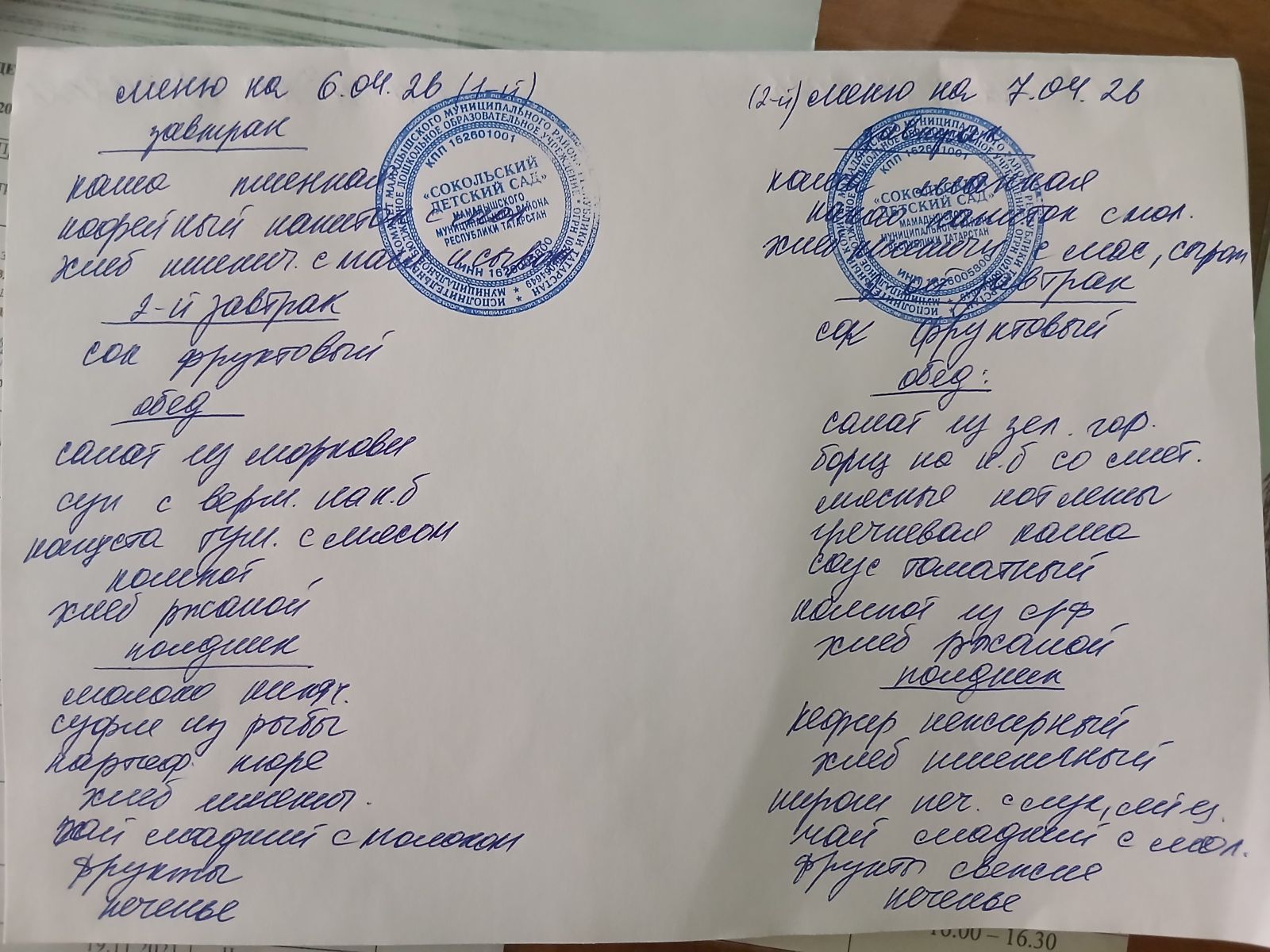 Меню на 6.04.26-7.04.26