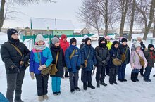 В игре «Зарница» участвовали две команды. Они с помощью топографической карты искали спрятанный пакет. Выполняя разные препятствия и задания, они сняли с вершины знамя Победы.