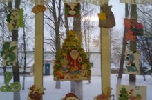 Каждый класс рисует новогодние украшения в школьном коридоре и на окне класса.