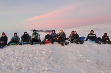 На зимнюю горку пришли кататься на санках. Отдыхали.Наслаждались природой. Экскурсия прошла очень успешно.