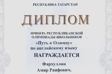 Наш Фархуллин А. призер Республиканской олимпиады школьников по английскому языку 19.01.2020