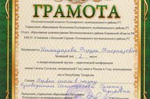 Кукмара районы Зур Сәрдек урта мәктәбендә "Минем фәндәге иң беренче адымнарым" фәнни- гамәли конференциядә катнашып, 2 нче класс укучысы Искандарова Фирүзә 2 нче урынны алды.