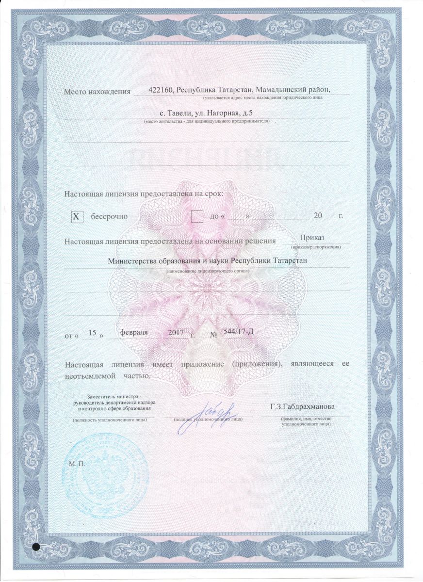 Адрес: 422160, Республика Татарстан, Мамадышский район, с. Тавели, ул. Нагорная, д. 5