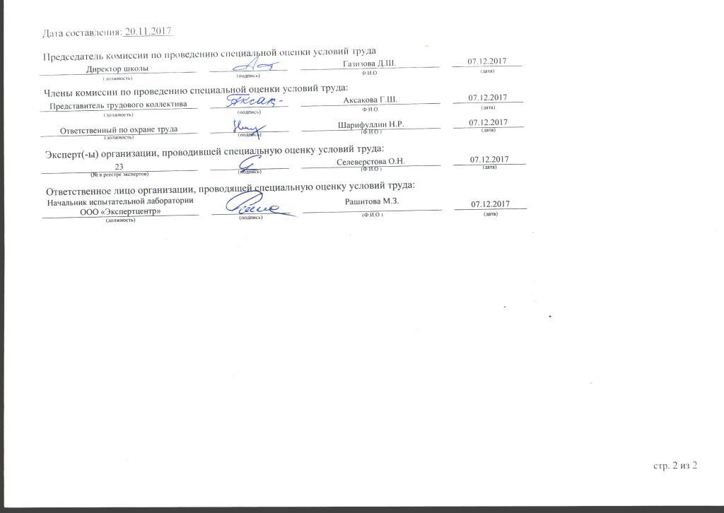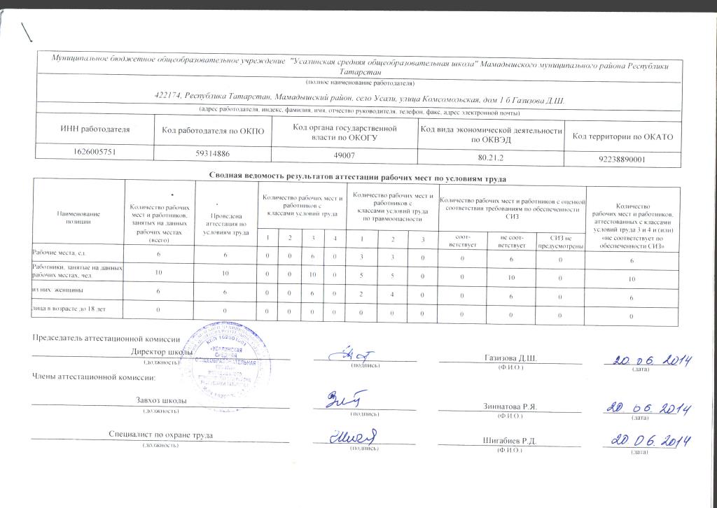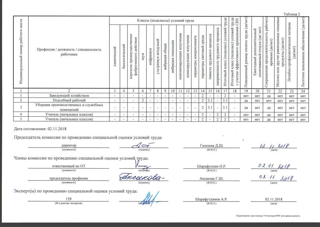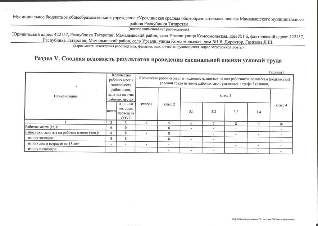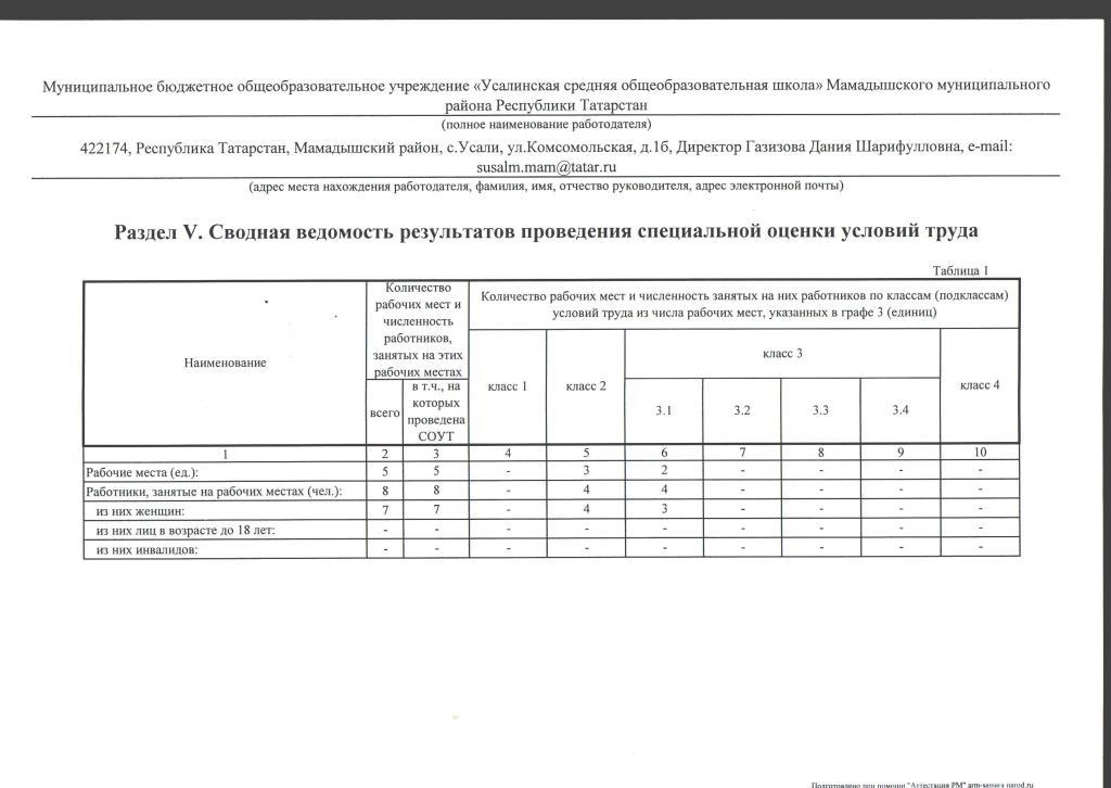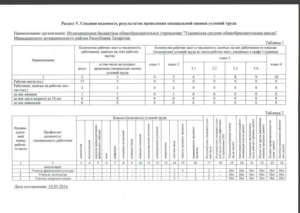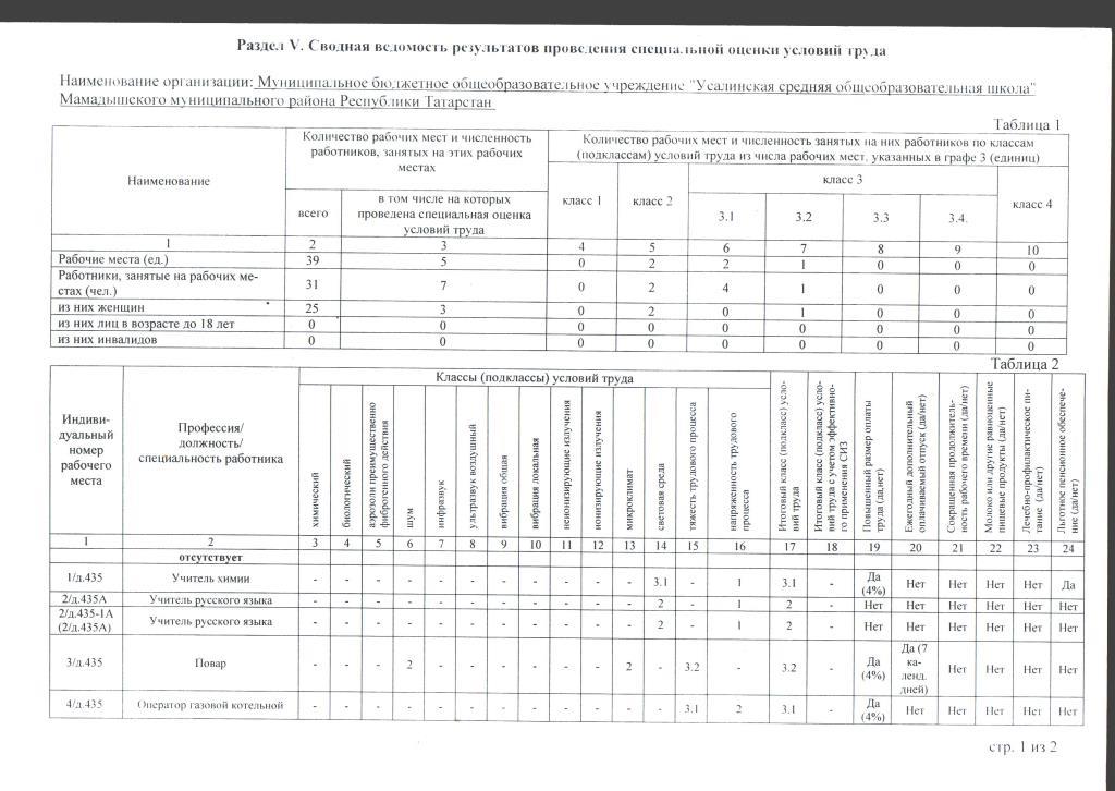 Сводные ведомости результатов проведения специальной оценки условий труда