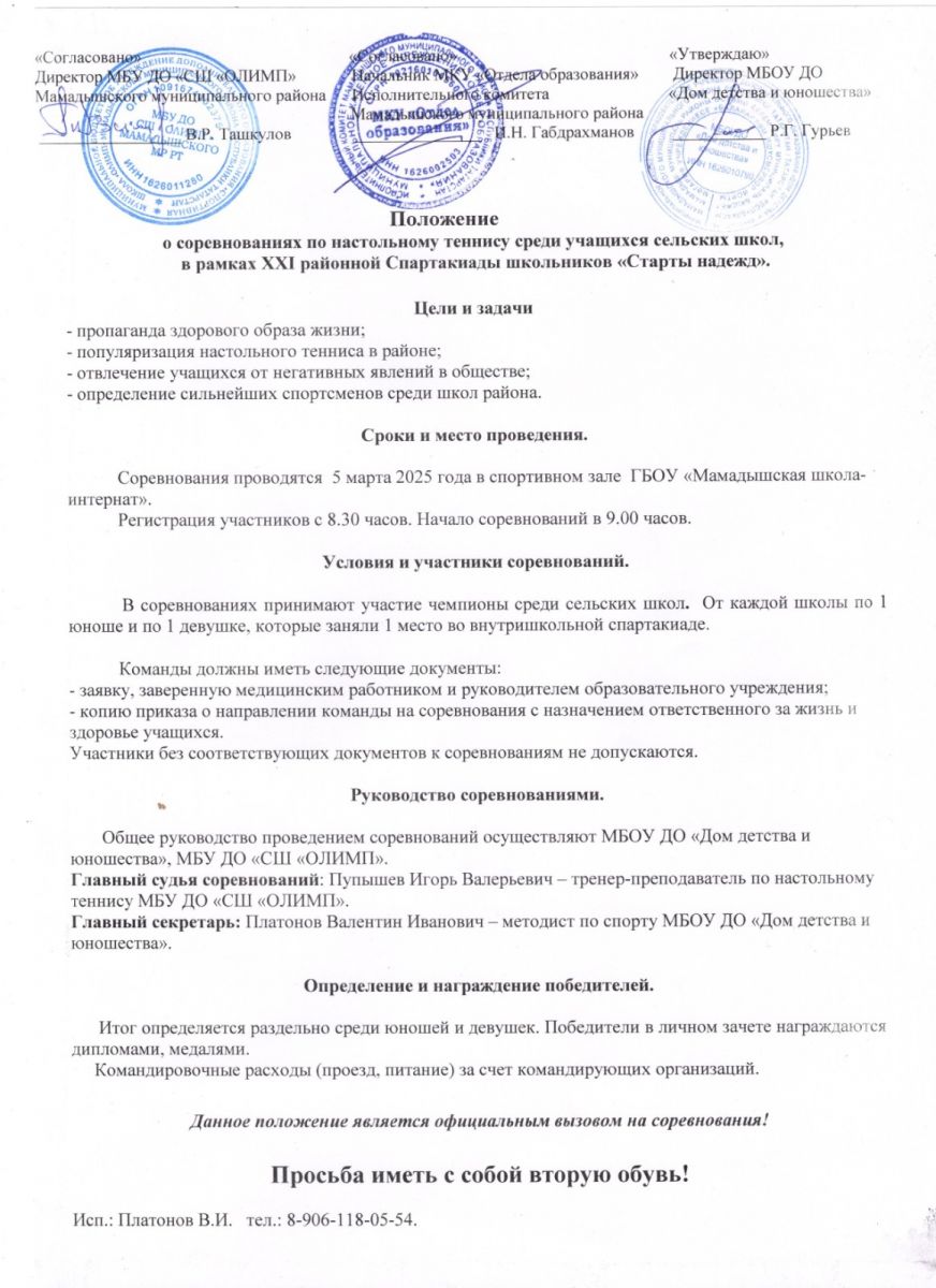 Старты надежд- настольный теннис среди учащихся сельских школ