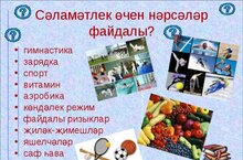 Тәрбияче: Хәерле көн, балалар. Бүген бездә сәламәтлек көне. Без бүген сәламәтлек иленә сәяхәткә барырбыз. Сәламәтлек, иң беренче елмаюдан башлана. Әйдәгез әле, бер-беребезгә елмаеп карыйк һәм хәерле көн телик.