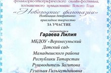 Гараева Лилиябез "Новогодние фантазии" дигән конкурска катнашып, Грамотага ия булды! молодец Лилия! Алга таба да уңышлар сиңа!