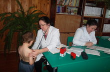 Районнан бүген балаларның сәламәтлекләрен тикшерергә балалар врачы һәм шәфкать туташы килде.