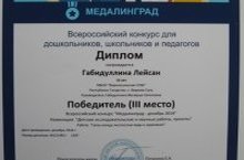 Ученица 10 класса Габидуллина Лейсан участвовала на Всероссийском конкурсе "Медалинград -декабрь 2014" и была награждена медалью, дипломом 3 степени.(Руководитель: Габидуллина М.Х., учитель биологии и химии)