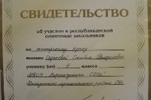 9 нчы сыйныф укучысы Садыкова Сөмбелә Казанда узган укучыларның республикакүләм олимпиадасында катнашты һәм 74 балл җыйды (Җитәкчесе: Нәҗипова М.Х., татар теле һәм әдәбияты укытучысы). Киләчәктә тагын да зуррак уңышлар телибез сиңа, Сөмбелә!