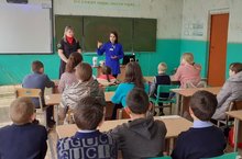 ЮХИДИ инспекторынын укучылар белән юл йөрү кагыйдәләре турында профилактик әңгәмәсе.