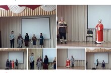 Ученики 6 класса: Алмаз, Данис, Тимофей, Анастасия, Амина, Данил, Алексей, Мария, Камиля, Ильназ и семиклассник Никита на фестивале школьных театральных коллективов на иностранном языке (районный тур).