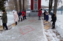 Учащиеся 5- го класса очистили от снега территорию памятника воинам-землякам, павшим за Родину в Великой Отечественной войне.