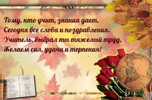 Сезне чын күңелебездән бүгенге һөнәри бәйрәмегез белән тәбрик итәбез. Сезгә киләчәк тормышыгызда саулык-сәламәтлек, гаиләләрегезгә тынычлык, иминлек, бәхет, авыр хезмәтегездә уңышлар теләп калабыз. Сабыр канатларыгыз беркайчан да сынмасын, тормыш юлларыгыз куанычлы, шатлыклы мизгелләргә бай булсын, мәктәпләребездә шат балалар тавышы тынмасын.