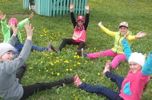 Бүген бездә сәламәтлек көне. Саф һавада төрле уеннар уйнадылар,күңелле ял иттеләр.