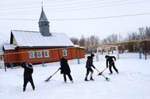 Акция по очистке снега во дворе сельской мечети «Азат» 08.02.2023