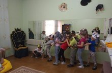 Сегодня расписывали гипсовые игрушки, играли в Лото, были подвижные игры на улице и Мастер- класс по театральному мастерству, где дети готовят показ сказки на новый лад. -