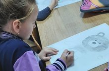 На день рождения знаменитого мишки юные художники объединения "Радуга творчества" подготовили тематические рисунки.