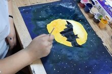 В Центре детского творчества юные художники объединения "Радуга творчества" с удовольствием рисовали тематические рисунки. Ночное небо и огромная полная луна, да ещё монстрики, приведения - это же так развивает фантазию! Рисунки получились отличные. -