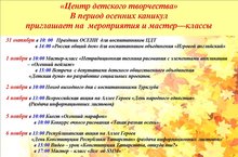 "Центр детского творчества" в период осенних каникул приглашает на мероприятия и мастер-классы