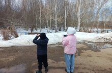 Сегодня с учениками начальных классов ходили на прогулку. Цель нашей прогулки была понаблюдать за птицами в бинокль, что же делают они? Весна, тепло. Мы с вами наслаждаемся тёплыми деньками. А птицы? Как вы думаете? Конечно же, птицы строят гнезда- колыбельки для своих птенцов! Недалеко от нашей школы, на тополях приютились грачи. Снуют они туда сюда и у каждого в клюве веточка. Много уютных гнезд они построили, скоро выведут свое потомство и полетят высоко в небе молодые грачи.