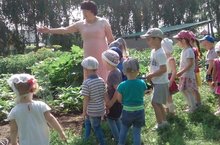 15 августа в МБДОУ «Бизякинский детский сад «Лейсан» воспитательница Гилязова Л.М. провела для детей познавательную экскурсию «Витамины на грядке — здоровье в порядке» . Цель экскурсии- познакомить детей с разными видами овощей, их произрастанием, их значением в питании людей; формировать у дошкольников потребность в позитивном отношении к употреблению овощных блюд.