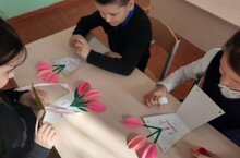 В преддверии Международного женского дня, в нашей школе прошёл мастер-класс по изготовлению поздравительной открытки к Международному женскому Дню.