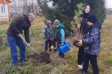 В третий день каникул юннаты приняли участие во Всероссийской акции "Юннатская страна" в формате "Озеленяй": школьники посадили на территори школы саженцы сосны