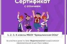29 ноября обучающиеся 1-4, 5-9 классов МБОУ "Брюшлинская ООШ" принимали участие в онлайн-уроке "Урок цифры": видеотехнологии, в котором предлагали разобраться, как устроены современные видеотехнологии, как алгоритмы понимают, какое видео вам порекомендовать, как у нас получается созваниваться с людьми на другом конце мира и какие специалисты работают над созданием и развитием видеотехнологий...