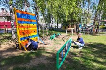 Безнең команда ата-аналар белән балалар бакчасы территориясен төзекләндерүгә берләште.