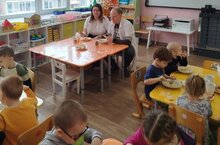 Бүген без балалар бакчасында - Ватанны саклаучылар көнендә искиткеч чара үткәрдек, анда Первых Хәрәкәтенең җирле бүлеге җитәкчесе Андрей Гриненко һәм Беренче мәктәпләр катнашты.