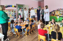 Она рассказала детям о профессии медицинской сестры. Показала как оказывать первую медицинскую помощь.