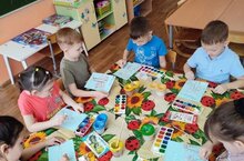 В подготовительной группе "Лесное озеро" проходило декоративное рисование по мотивам городской росписи "Рисование городецкого коня".