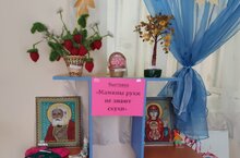 В фойе детского сада организована выставка "Мамины руки не знают скуки"!