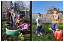 Группа «Радуга» приняла участие в акции «Сад Памяти». Воспитанники группы вместе с родителями, у себя на приусадебном участке, в честь прадедов, высаживали деревья.