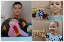 В подготовительной группе «Улыбка» воспитатели организовали выставку осенних поделок на тему: «Дары осени»