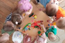 В младшей группе раннего возраста "Гномики" впервые прошло знакомство с правилами поведения на дороге. Воспитатель познакомила ребят с проезжей дорогой, с транспортом.