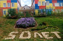 В этом году, территорию МБДОУ "Детский сад №11" украшает клумба в виде герба Менделеевска - прекрасный подарок к юбилею города.