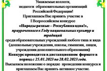 Всероссийский конкурс «Народы разные – Республика одна!», приуроченный к Году национальных культур и традиций"Халыклар төрле-республика бер генә!"милли мәдәниятләр һәм гореф-гадәтләр елына багышланган/ 01.04.2023